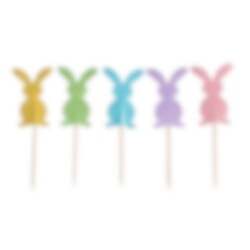 Versier uw gebak voor Pasen met deze mooie cake toppers in de vorm van paashazen! De kleurrijke decoraties in zachte pasteltinten zijn perfect om in cupcakes, muffins of ander gebak te steken als u een speelse en feestelijke paassfeer wilt creëren.