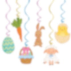 Creëer een speelse en feestelijke paassfeer met deze prachtige hangdecoraties. De set bevat zes verschillende ontwerpen, waaronder een konijn, een paasei en een schattig kuikentje dat dankzij de kleurrijke spiralen sierlijk in de lucht zweeft.