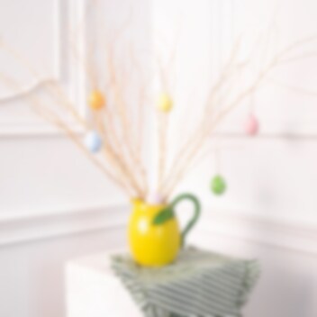 Creëer een elegante en tijdloze paasdecoratie met deze prachtige hangende eieren. Gemaakt van echte eierschalen en versierd met bloemen in zachte pasteltinten, vormen ze een mooie toevoeging aan de paastak of als onderdeel van een stijlvolle tafelsetting.