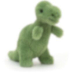 Een schattige en zachte kleine tyrannosaurus die op zichzelf kan staan. Deze grasgroene kleine dinosaurus heeft een gladde, pluizige vacht, twee korte pootjes en twee kleine armpjes, een lange taps toelopende staart, een kleine glimlach en alerte ogen die uitkijken naar het volgende lekkere hapje. Een knuffelige kleine dino die je bijna overal kan vergezellen. Gemaakt van polyester en indien nodig met de hand gewassen.