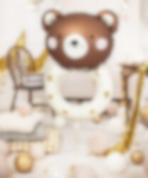 Folieballon met afbeelding van een schattige teddybeer met daaronder een rammelaar. De ballon is opgeblazen 61 x 88 cm en kan worden opgeblazen met lucht of helium.
