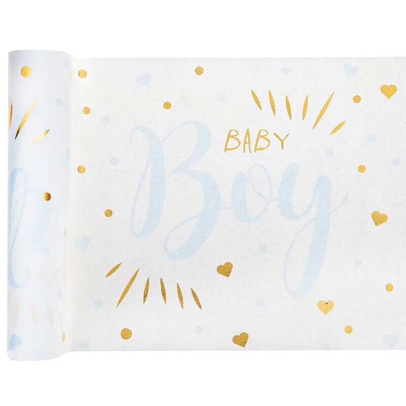 Tafelloper - Lichtblauw met gouden stippen 3 meter
