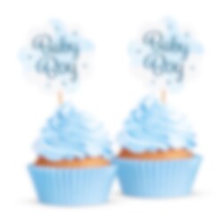 Maak muffins en cupcakes extra feestelijk met deze lichtblauwe decoraties met de tekst 'Baby Boy'. Ze zijn perfect voor een babyshower, doop of welkomstfeest en helpen je bij het creëren van een lieve en samenhangende desserttafel.