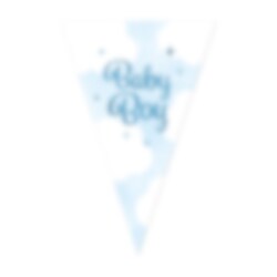 Creëer een mooie en feestelijke sfeer voor een babyshower, doop of welkomstfeest met deze decoratieve vlaggenlijn in lichtblauw met de tekst 'Baby Boy'. Deze past perfect boven de feesttafel, tegen de muur of als onderdeel van een grotere decoratie.
