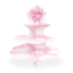 Presenteer muffins, cupcakes en andere lekkernijen op een extra feestelijke manier met deze mooie cupcakestandaard in roze met wolkenafbeeldingen en de tekst Baby Girl. Hij past perfect bij een babyshower, doop, welkomstfeest of andere vieringen waar je een zoete en sfeervolle desserttafel wilt creëren.