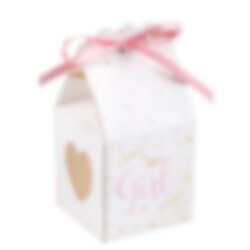 6 kleine doosjes in een witte kleur met de tekst Baby Girl en met fijne details in roze en goudfolie. Vul deze met iets lekkers en zet ze op tafel als leuk cadeautje voor je gasten als het tijd is voor een doop of als iemand je gaat verrassen met een babyshower.