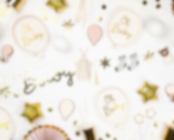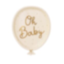 6 ballonvormige papieren bordjes met motief van de tekst "Oh Baby" in goudfolie. De bordjes zijn 17,5 x 22 cm.