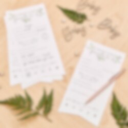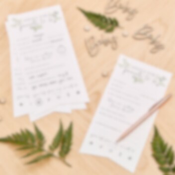 10 stuks kaart uit de Botanical Baby collectie. Laat de gasten van de babyshower een goed advies op de kaartjes schrijven en geef het dan aan de aanstaande moeder. De kaarten zijn wit met groene tekst en zijn ongeveer 15,5 x 13,5 cm groot en milieuvriendelijk.