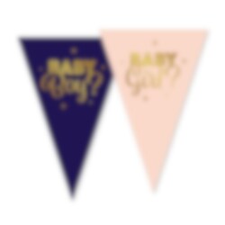 Creëer een feestelijke en spannende sfeer met deze mooie vlaggenlijn voor een gender reveal. Met vlaggen in twee verschillende kleuren en de teksten Baby Boy? en Baby Girl? is het een decoratief detail dat perfect past bij de aankleding van het feest voor de grote onthulling.