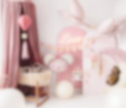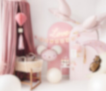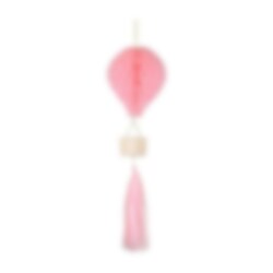 Honeycomb decoratie met een heteluchtballon in roze kleuren. De decoratie is gemaakt van papier en is 90 cm hoog.