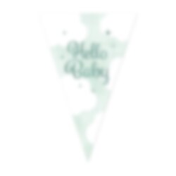 Creëer een mooie en feestelijke sfeer voor een babyshower, doop of welkomstfeest met deze decoratieve vlaggenlijn met de tekst 'Hello Baby'. Het zachte ontwerp maakt het een mooi detail boven de feesttafel, tegen de muur of als onderdeel van een grotere decoratie.