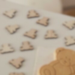 Schattige confetti van houten materiaal in de vorm van kleine lieve teddybeertjes uit het Teddy Bear Babyshower thema. Versier hiermee de tafel als het tijd is voor babyshowers of doopfeesten. Ze passen ook bij gerelateerde items in het Hello Baby-thema.