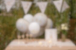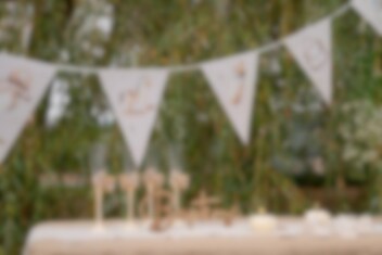 De vlaggenlijn past mooi achter de gedekte tafel, bij de cadeautafel of als decoratie in de kamer.