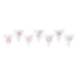 Mooie vlaggenlijn uit de Little Teddy-serie die net zo goed past bij een babyshower als bij een doop en andere vieringen voor de kleine. De verschillende afbeeldingen van een teddybeer en andere babygerelateerde details maken het een decoratief onderdeel van de viering en helpen een uniforme uitstraling te creëren.
