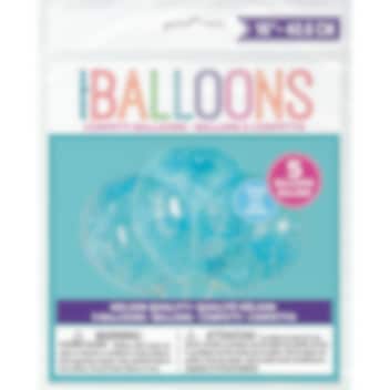 5 stuks mooie ballonnen gevuld met blauwe hartvormige confetti. Een mooie decoratie voor het kinderfeestje of feestje. De ballonnen hebben een diameter van ongeveer 25 cm wanneer ze zijn opgeblazen. Vul de ballon zelf met confetti en blaas de ballon vervolgens handmatig op, met een ballonpomp of helium. Wrijf de ballon vervolgens tegen een stuk stof om statische elektriciteit op te wekken, op deze manier blijft de confetti aan de binnenkant van de ballon plakken.