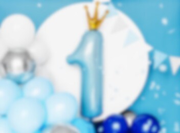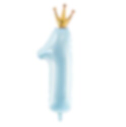 Supermooie folieballon in lichtblauw die het cijfer 1 voorstelt. De ballon heeft ook een gouden kroon bovenop en is een prachtige decoratie voor een 1e verjaardag.