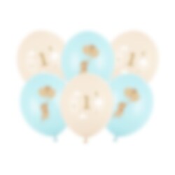 Vier de eerste verjaardag met deze schattige ballonnen in blauwe, witte en beige tinten met mooie opdrukken en charmante muisdecoraties. Perfect om een schattige en samenhangende feestdecoratie te creëren voor de 1e verjaardag!