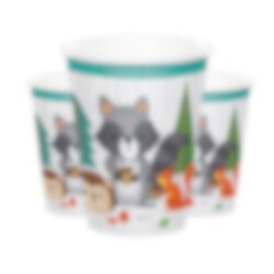 8 papieren bekers in mooie kleuren en met motieven van de dieren en het bos uit het thema Woodland Animals. Een voor de hand liggend decoraccessoire om te hebben op het kinderfeestje met een dierenthema. De bekers zijn ongeveer 10 cm hoog en hebben een inhoud van ongeveer 266 ml.
