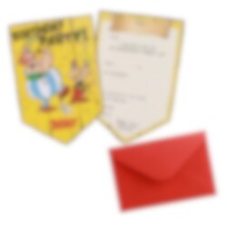 Nodig uit voor een avontuur! Deze uitnodigingskaartjes met rode enveloppen maken het extra leuk om vrienden uit te nodigen voor een kinderfeestje met Asterix-thema. Let op dat de voorgedrukte tekst op de kaarten in het Engels is.