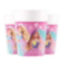 8 papieren bekers met een mooi Barbie-afbeelding en kleurrijke schattige details. Stijlvolle bekers om te serveren als het tijd is voor een kinderfeestje. De bekers zijn ongeveer 9 cm hoog en hebben een inhoud van ongeveer 200 ml. De bekers zijn gemaakt van FSC-gecertificeerd papier.