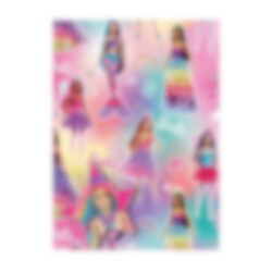 Mooi en kleurrijk cadeaupapier met Barbie-afbeelding. De verpakking bevat 2 rollen cadeaupapier van 50 x 70 cm en 2 etiketten.