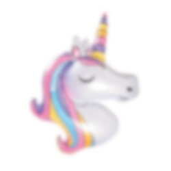 Folieballon die een eenhoorn hoofd voorstelt in prachtige kleuren. Een leuke decoratie voor het kinderfeestje met een eenhoorn thema. De ballon is 86 x 62 opgeblazen en wordt opgeblazen met behulp van het meegeleverde rietje of met helium om hem te laten zweven.