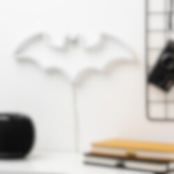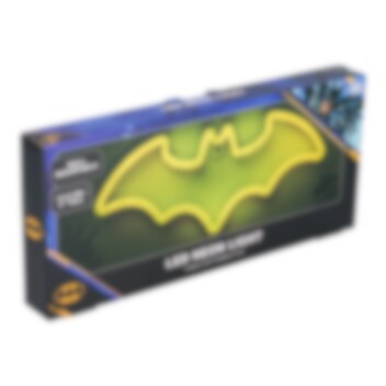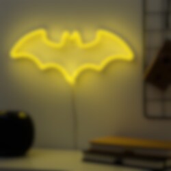 toere wandlamp in de vorm van het iconische Batman-logo dat fel neongeel oplicht – alsof je een vleugje Gotham City in huis haalt!