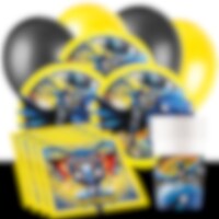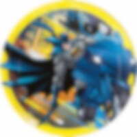 6 gevormd uitnodigingskaartjes met Batman op een motorfiets. Gebruik deze om je vrienden uit te nodigen voor een leuk Batman kinderfeestje.