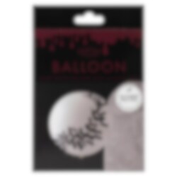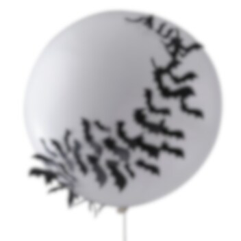 Een indrukwekkende witte ballon die versierd wordt met zwarte vleermuizen van karton in verschillende maten voor een prachtig 3D-effect. Een echte blikvanger voor ieder Halloweenfeest.