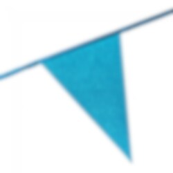 Vlaggenslinger van karton in een sprankelende blauwe kleur die een passende decoratie zal zijn voor elk kinderfeestje of feestje. De slinger is ongeveer 6 meter lang.