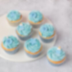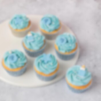 9 stuks suikerdecoraties die sterren voorstellen in blauwe, lichtblauwe en witte kleuren. Versier hiermee je taart of gebak voor kinderfeestjes en andere feesten.