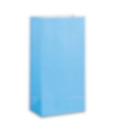 Set van 12 lichtblauwe papieren uitdeelzakjes, ideaal om te vullen met snoepjes, kleine cadeautjes of traktaties. Perfect voor kinderfeestjes of themafeesten. De zakjes zijn ca. 25 × 13 cm groot.