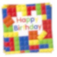 Dek de tafel voor een kleurrijk kinderfeestje met deze servetten met bouwstenenontwerp. Met de tekst "Happy Birthday" zijn ze perfect voor jonge bouwliefhebbers. De servetten zijn 2-laags en meten 33 × 33 cm wanneer ze volledig zijn uitgevouwen.