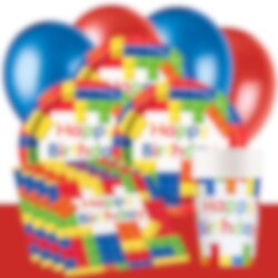 Maak er een kleurrijk bouwstenen verjaardag van vol plezier en fantasie! Met ons bouwstenen-feestpakket organiseer je in een handomdraai een vrolijk verjaardagsfeestje waarin alles perfect bij elkaar past. De borden, papieren bekers en servetten hebben afbeeldingen van bouwstenen met de tekst Happy Birthday, en de bijpassende ballonnen en het rode plastic tafelkleed maken de feesttafel helemaal af.