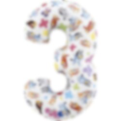 Laat Bluey de 3e verjaardag nog feestelijker maken met deze mooie cijferballon! Het is 66 cm hoog en een fantastische decoratie gevuld met lucht of helium.