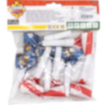 8 feestelijke roltongen met afbeeldingen uit de serie Brandweerman Sam. Een leuke verrassing voor de kinderen op het kinderfeestje.