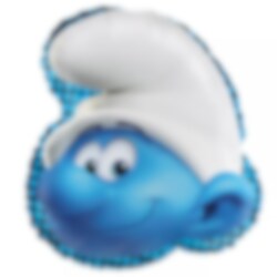 Folieballon in de vorm van een smurf. De ballon heeft een diameter van ongeveer 45 cm en is gevuld met lucht of helium. De ballon heeft een zelfsluitend ventiel en om hem op te blazen met normale lucht heb je een ballonpomp nodig, of een rietje.