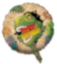 Hele mooie folieballon met een afbeelding van een dinosaurus en de tekst 'Happy Birthday' in het Dinosaur Adventure-thema. Perfect als decoratie voor je kinderfeestje. De ballon kan worden opgeblazen met gewone lucht of helium en heeft een diameter van ongeveer 45 cm.