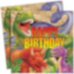 16 leuke servetten in Dinosaur thema. Dek de tafel met stijlvolle dino servetten als je een kinderfeestje hebt. Ze vormen een geweldige decoratie en er zijn altijd servetten nodig om jezelf af te drogen. De servetten hebben 2 lagen en zijn uitgevouwen 33 x 33 cm.