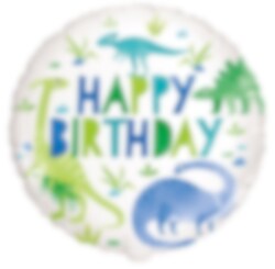 Stijlvolle witte folieballon met een kleurrijke afbeelding van schattige dinosaurussen. Een leuke decoratie voor elk dinosaurus kinderfeestje.