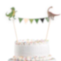 Taartdecoratie in groentinten en met coole dinosaurusafbeeldingen. Versier de taart hiermee om een wow-factor te creëren als er een kinderfeestje is. De taartdecoratie is ongeveer 20 x 15 cm groot.