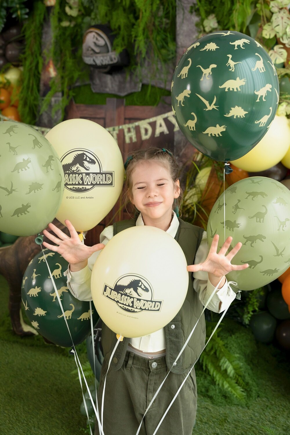 Wek de machtige dinosaurussen van weleer tot leven en creëer een onvergetelijke ervaring voor het kinderfeestje met deze spannende Jurassic World-ballonnen! Dit pakket bevat 6 ballonnen met een mix van ontwerpen: sommige zijn versierd met het iconische Jurassic World-logo, terwijl andere gedetailleerde silhouetten van verschillende dinosaurussen zoals T-Rex, Triceratops en Pterodactyl hebben in tinten donkergroen, lichtgroen en crèmewit.