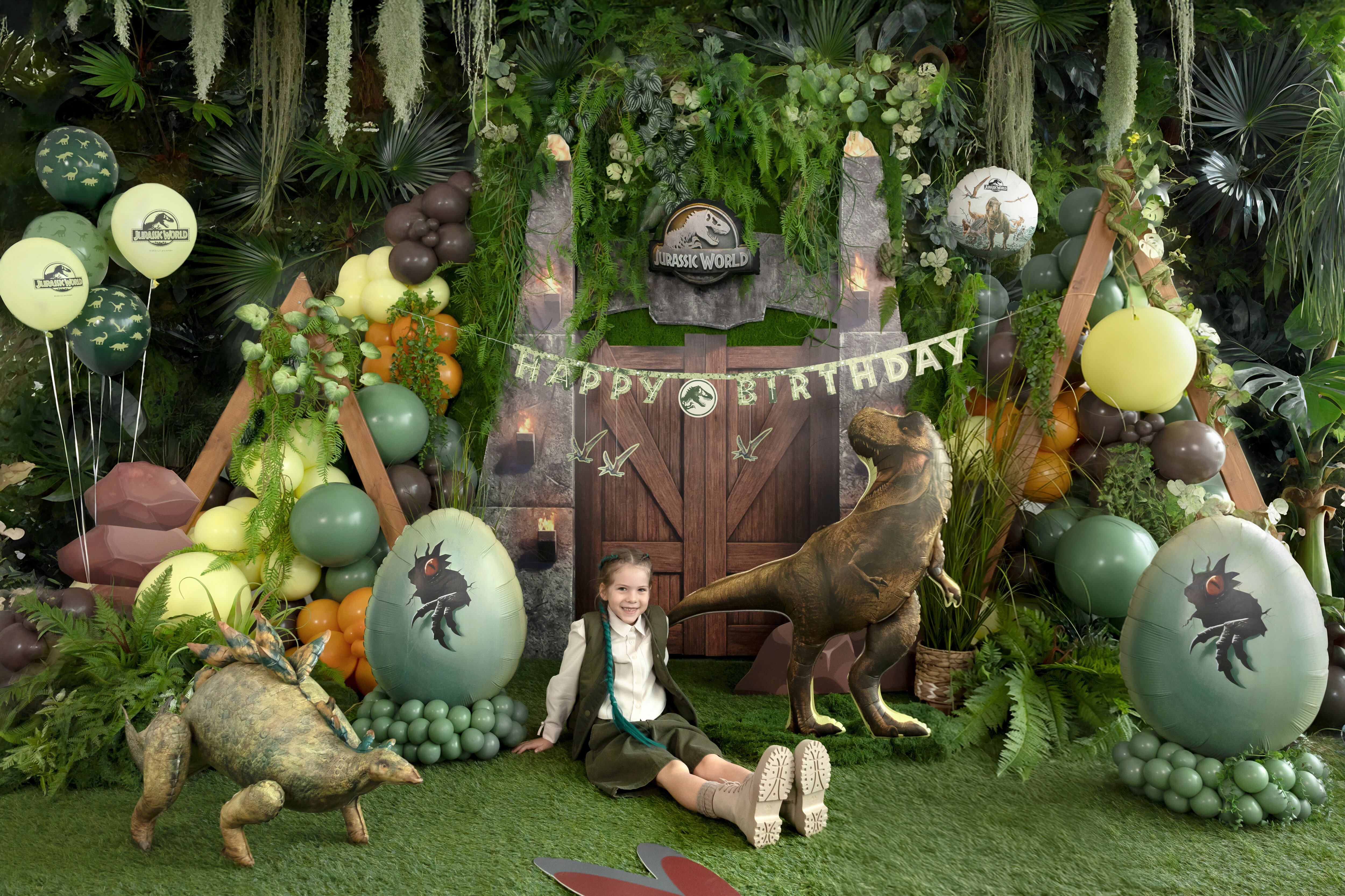 Stel u de opwinding voor: de prehistorische wereld ontmoet het kinderfeestje! Met deze indrukwekkende folieballon van Jurassic World laat u het iconische logo met het T-Rex-skelet boven het kinderfeestje zweven.