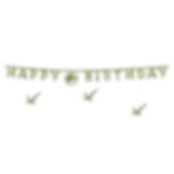 De slinger is versierd met letters die de tekst "HAPPY BIRTHDAY" vormen in een opvallende groene tint en met een getextureerd patroon. Tussen de woorden hangt het iconische Jurassic World-logo met het silhouet van een T-Rex.