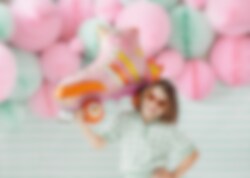 Zeer mooie folieballon van een kleurrijke rolschaats met goudfolie details. Een leuke decoratie om mee te nemen naar het feest met een discothema.