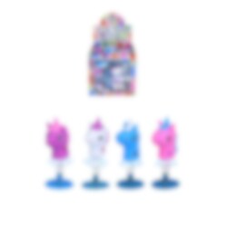 Het speelgoed is verkrijgbaar in zes verschillende kleuren, maar ze worden ongesorteerd en per stuk verkocht, dus het is een verrassing welke je krijgt. Ze zijn 4-5 cm hoog.
