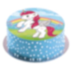 Mooie taartprint van heerlijke fondant met een schattige afbeelding van een eenhoorn. De taartprint is klaar om direct op de taart te plaatsen en heeft een scherpere print dan een ouwelprint. Bovendien heeft de afbeelding een heerlijke vanillesmaak. De taartprint heeft een doorsnee van ongeveer 20 cm.