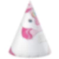 6 feesthoedjes met schattige eenhoornmotieven. Leuk voor een kinderfeestje met eenhoornthema. De hoedjes zijn ongeveer 19 cm hoog en blijven goed zitten dankzij een elastiek.