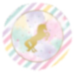 Ronde folieballon in zachte pastelkleuren met een afbeelding van een eenhoorn in goudfolie. Een schattige decoratie voor een kinderfeestje. De ballon heeft een diameter van ongeveer 45 cm wanneer opgeblazen.