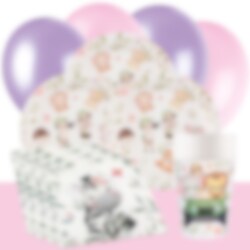 Daarnaast bevat het pakket 10 lichtroze ballonnen, 10 lichtpaarse ballonnen en een lichtroze plastic tafelkleed (137 x 274 cm), perfect om een vrolijke en feestelijke sfeer te creëren.